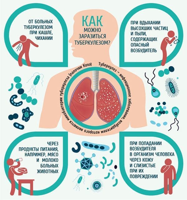 Кроме того, риск заразиться многократно увеличивается при тесном и длительном контакте с больными активными формами туберкулеза.